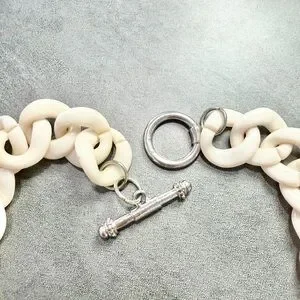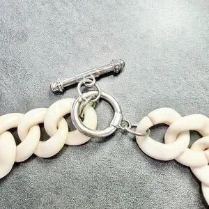 Stylish oversized acrylic or resin cream link chain necklace with a glossy lime green heart pendant. Toggle Closure Lightweight and eye-catching for everyday wear. Cream