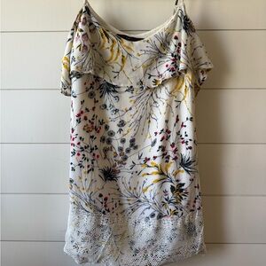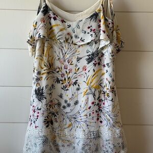 Boho Floral Off Shoulder Mini Dress Lace Hem | Anthropologie Style Size Small