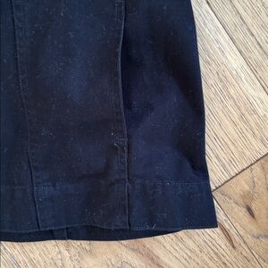 Classic shirt-style jacket by Bill Blass. Button-front closure and structured collar. Lightweight fabric for layering. Straight hem and long sleeves. Versatile black piece for everyday wear.