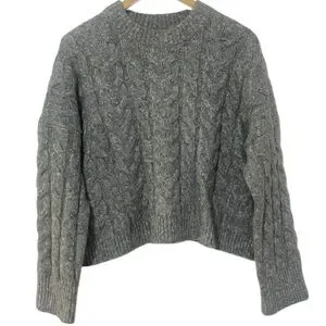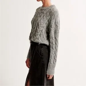 Abercrombie Cable Wedge Crew Sweater Grey Size Small