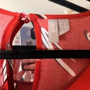 ASOS Red Printed Long Sleeve Dress with White & Black Accents