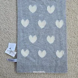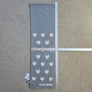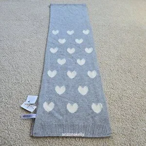 NWT Talbots Cashmere Grey Knit Scarf With White Hearts