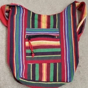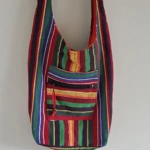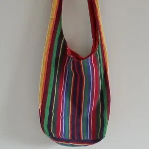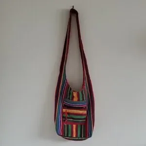 Multicolor Striped Cotton Crossbody Boho Hippie Festival Vacation Sling Bag