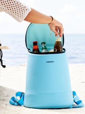 Corkcicle Eola neoprene bucket cooler bag in santorini