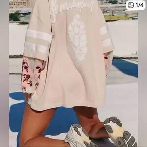 Gorgeous Oversized Pale Pink/Cream Graphic with Embroidery.