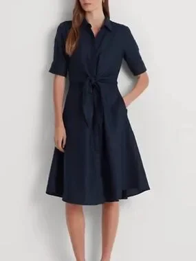 NWT Ralph Lauren Navy Tie-Front Midi Shirt Dress