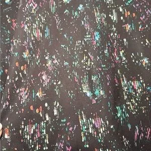 • Color/Print: Dark base with multicolor paint splatter
