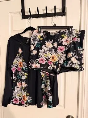 torrid Black Floral Swim Rash Guard Top with Colorful Blooms