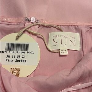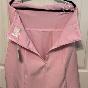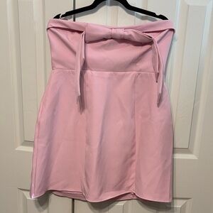 NWT Strapless mini with oversized bow detail. Straight neckline. Silicone strip around inside to prevent slippage. Back zip closure. Boning on sides of bodice. Fully lined. Size XL Color Pink Sorbet 18” PTP & 26” L Polyester