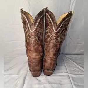 Tony Lama Brown Leather Western Heeled Boots with Turquoise & Red Accents