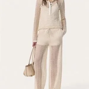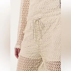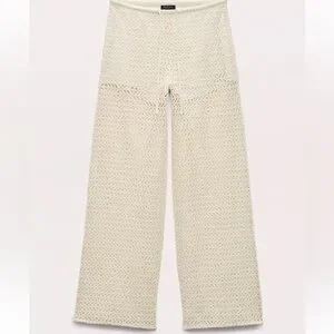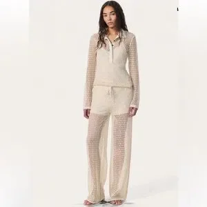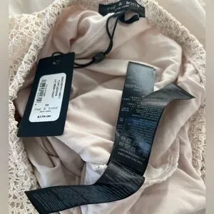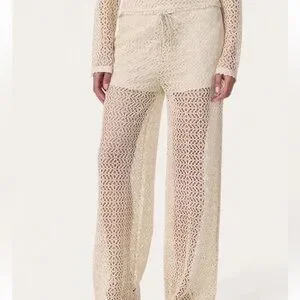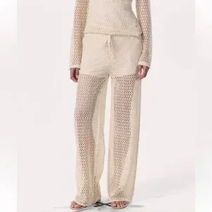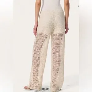 NWT $278.00 Rag & Bone Turtledove Liv Mesh Pants. Size: XS . Fit true size. Cream crochet wide-leg knit pants with a pull-on drawstring waistband, Side pockets and silky-soft lining to the length mini shorts. 100% polyester, lining 93% modal , 7% elastane. Lightweight, breathable design perfect for beach days or layered looks. Soft knit offers comfortable stretch and relaxed fit.