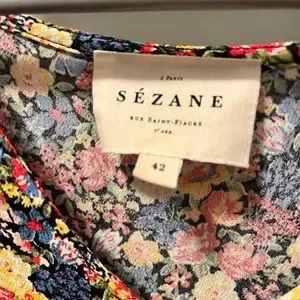 Sezane Floral V-Neck Flutter Sleeve Blouse in Multi-Color