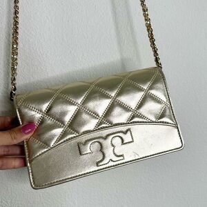 REDUCED 🌸 Tory Burch Quilted Metallic Champagne Crossbody Clutch