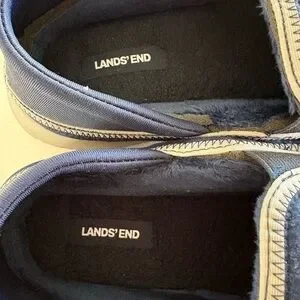 Men’s Lands End ultra lightweight Navy slip-on slippers cozy lining. Easy to wear. Stylish and comfortable. Size 12 Fits more like an 11.