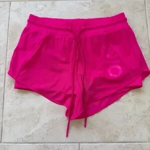 ALO YOGA Ambience Double Layered Hot Pink Neon Shorts Running Athletic