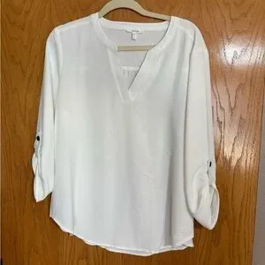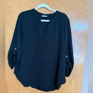 3 Maurice’s brand 3/4 length Atwood Popover Blouses, size large, gently worn. Colors are black, white, and light blue. Lightweight and flowy fabric.