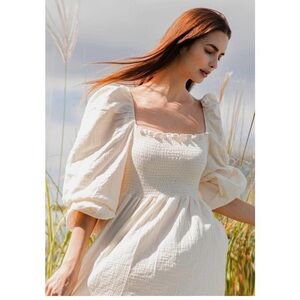 Nothing Fits But Aoi Dress Size M Eggshell Midi Maternity Smocked Cotton NWT