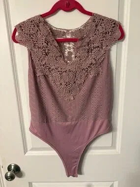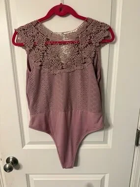 Lace-Detail Sleeveless Bodysuit in Dusty Rose NWOT never worn