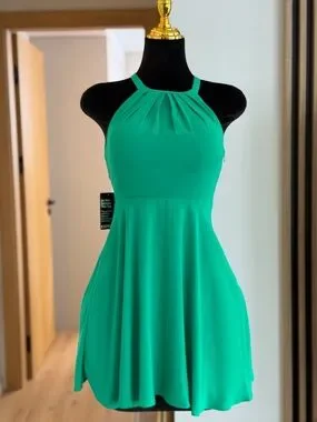 Express Teal Mini Flowy Halter Dress | Emerald Muse