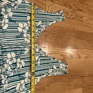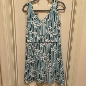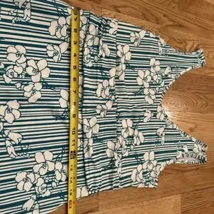 Title Nine Dream V-Neck Green & White Stripe Floral Dress Size M Hiking Outdoors