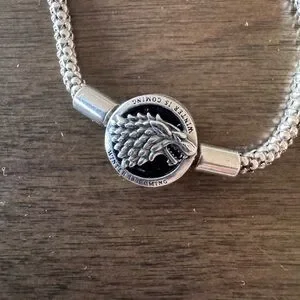 Game of Throne collab. The gold plating is slightly faded but still looks good. I was using this for a bit but got a different snake chain bracelet now. No pandora box