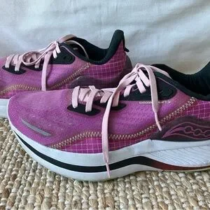Lightweight running shoes with breathable mesh upper. Very comfortable with good support. My orthopedic suggested these as a top choice. Cushioned midsole. Sleek design for workouts and daily wear. Very good used condition.
