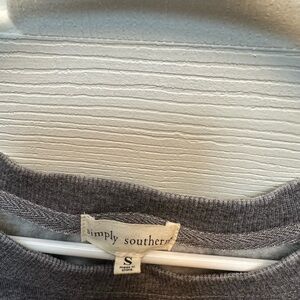 Casual Simply Southern men’s sweatshirt in heather gray. Features a front graphic medallion with a black dog and contrast yellow and navy accents. Soft, comfortable pullover ideal for everyday wear. Includes branded Simply Southern logo and relaxed fit.