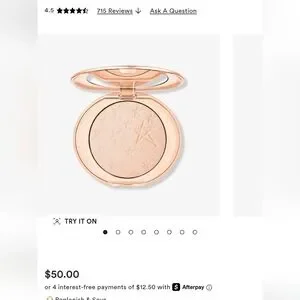 Like all Charlotte's powder compacts, the Hollywood Highlighter packaging includes a magnet to allow the product to be easily removed and replaced with any Charlotte Tilbury beauty powder refill.