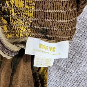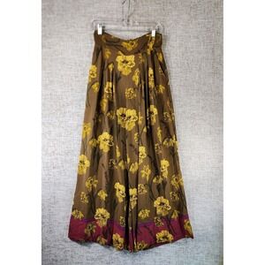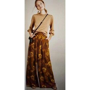 Anthropologie MAEVE Terrace Floral Wide Leg Pants Womens 2 Brown Gold Smocked
