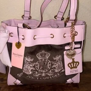 Juicy Couture Classic Scotty Daydreamer Tote Pink Brown Crown Crest Bag NWT Y2K