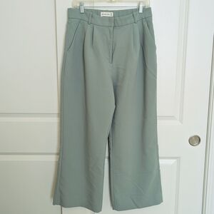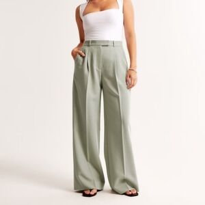 ABERCROMBIE & FITCH Curve Love Sloane Tailored Wide Leg Pant Women 31 12S Green Pleated Office Minimalist Preppy