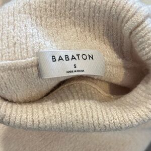 Features a classic crew neckline and fine ribbed details. Versatile neutral color pairs well with any outfit. Size Small.