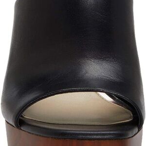 A sleek black slide wedge with marble wood heel and a smooth upper. Comfortable open-toe design for easy wear. Versatile black color pairs with every fashion decision!