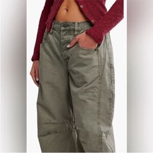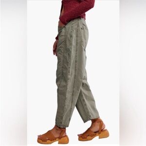 Free People Good Luck Barrel Leg Pants in Olive Green 24