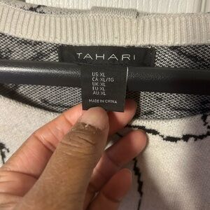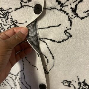 Tahiri Women’s Cream Floral Crewneck Sweater with Black Print with pilling