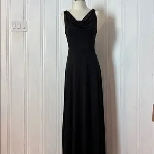HALARA Black Maxi Dress | Cowl Neck, Open Back, Hidden Slit | Size M