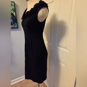 A timeless black sleeveless dress with elegant ruffle trim at the neckline. Designed for a streamlined, flattering silhouette. Versatile for day-to-night occasions. Comfortable and polished black finish.