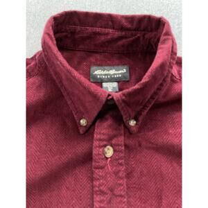 Eddie Bauer Corduroy Flannel Shirt Men's XL Tall Red Herringbone