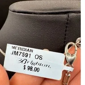 Brighton Meridian Two Tone Hammered Square Pendant Wheat Chain Necklace JM7591