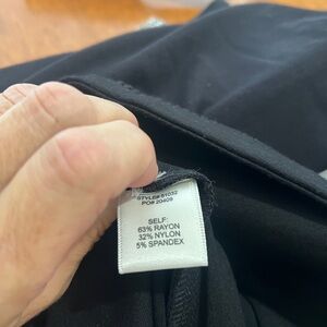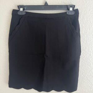 Sleek black pencil skirt with scallop hem detail. Clean lines and subtle side pockets. Stretch knit fabric offers a smooth silhouette. Easy to pair with casual or dressy tops. Great condition