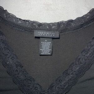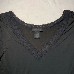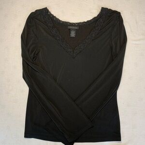 The Limited Black V-Neck Long Sleeve Lace Trim Top