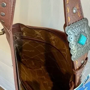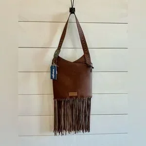 Wrangler Brown Fringe Shoulder Bag with Studded Strap