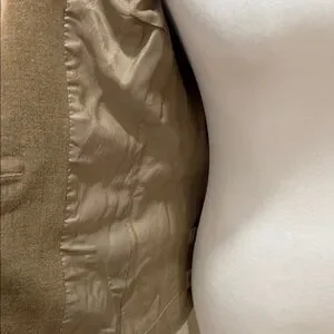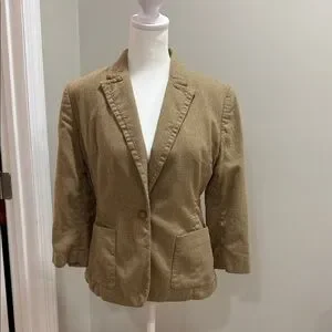 Stylish tan blazer with a tailored fit. Features a single button closure and front pockets. Ideal for professional or casual wear.