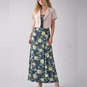 FLORAL NAVY Maxi Skirt. With Jacket.