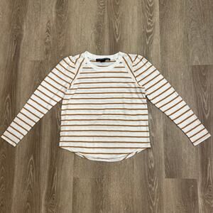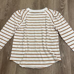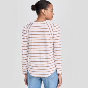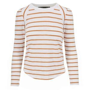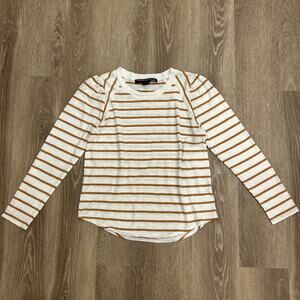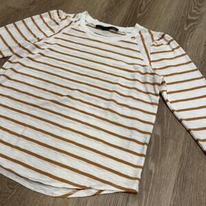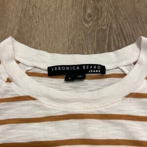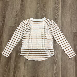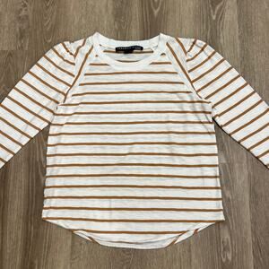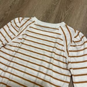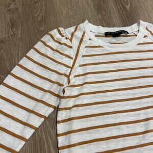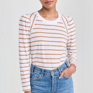 Veronica Beard Mason Stripe Puff Sleeve Baseball Tee White Caramel Size M