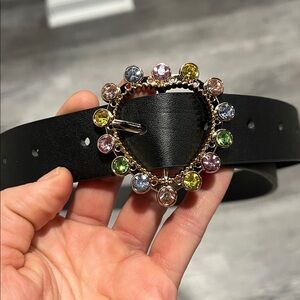 ✨ New Without Tags – Black Belt with Multicolor Rhinestone Buckle ✨