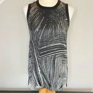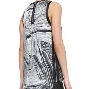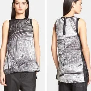 Helmut Lang Method Print Abstract Silk Satin Sleeveless Side Zipper Blouse Small