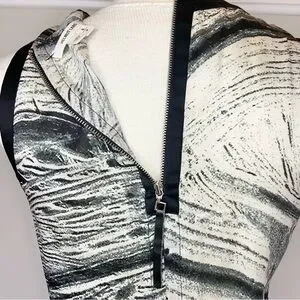 Helmut Lang Method Print Abstract Silk Satin Sleeveless Zipper Detail Blouse