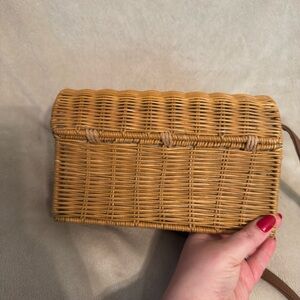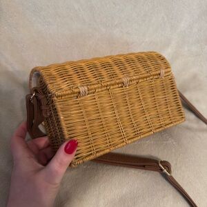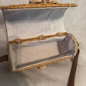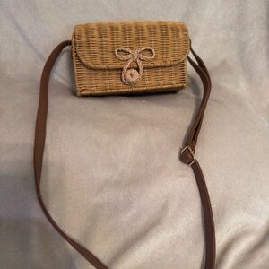 Woven Straw Crossbody Bag with Brown Strap