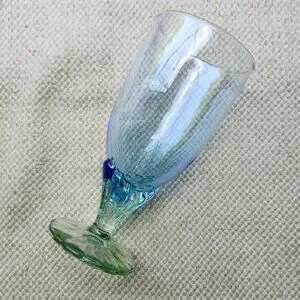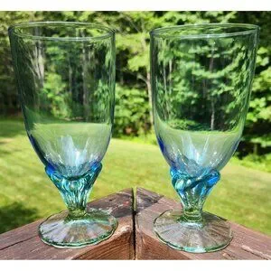 Set of 2 Bormioli Rocco Bahia Blue Green Footed Iced Tea Water Goblets 7 3/8"